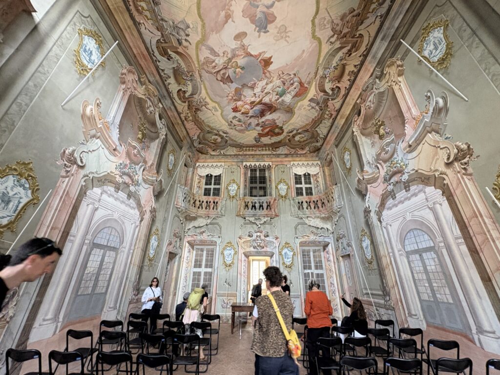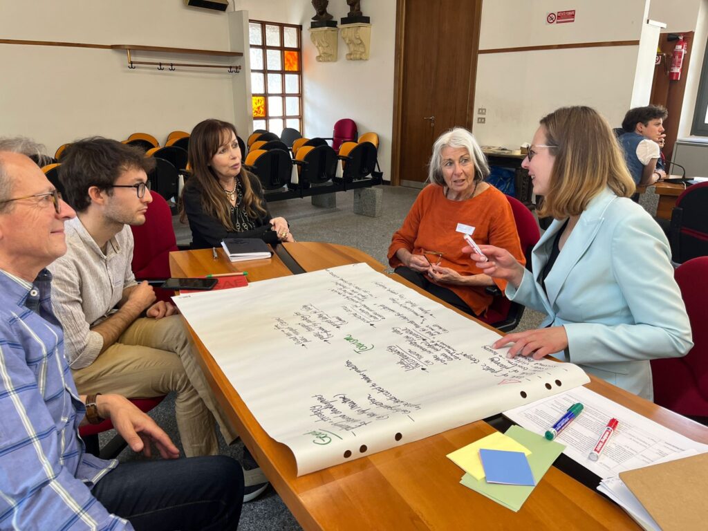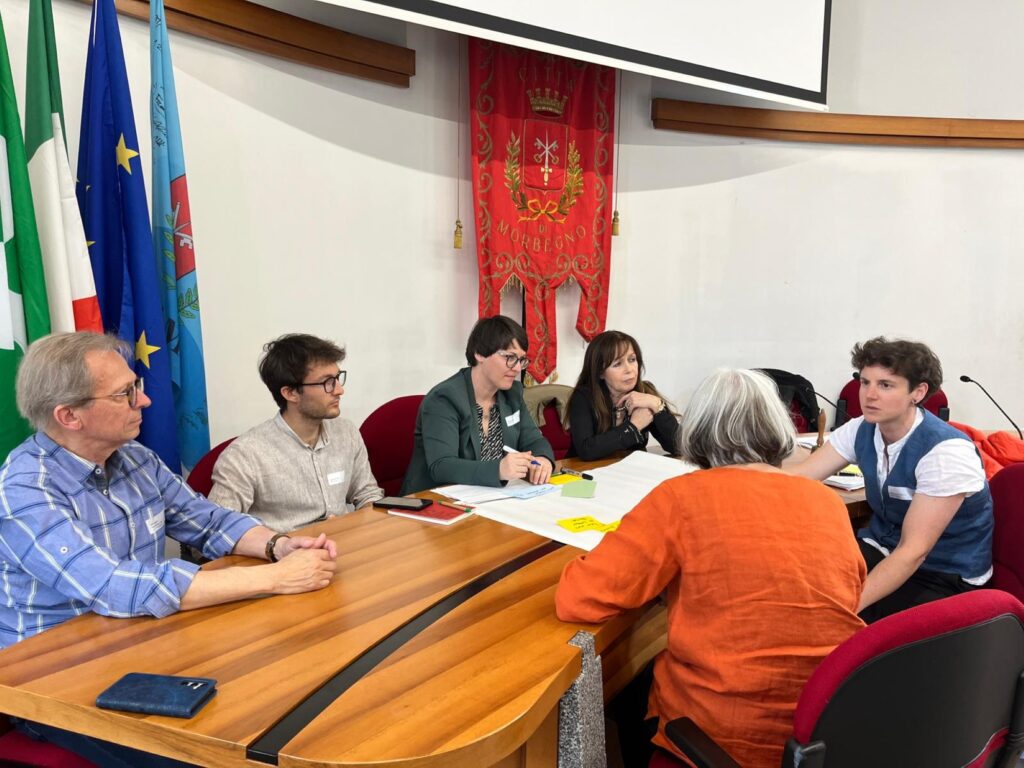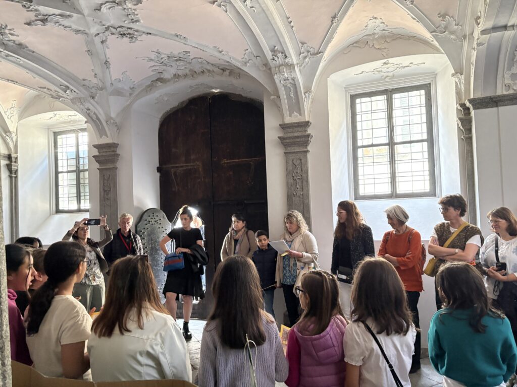 Nel pomeriggio si è tenuto un workshop interattivo in formato World Café: quali sono gli esempi positivi e le misure adottate nei settori della mobilità, del turismo e dell’adattamento ai cambiamenti climatici? Il vivo dibattito ha messo in luce l’impegno e la varietà di idee all’interno della rete. Il workshop è stato seguito da una visita guidata che ha permesso ai partecipanti di scoprire il centro di Morbegno. Un momento speciale è stata la visita a Palazzo Malacrida, dove un gruppo di bambini ha illustrato agli ospiti le sale del palazzo storico. Il pomeriggio si è concluso in Piazza San Giovanni, dove è stato riaperto l’infopoint della Convenzione delle Alpi.