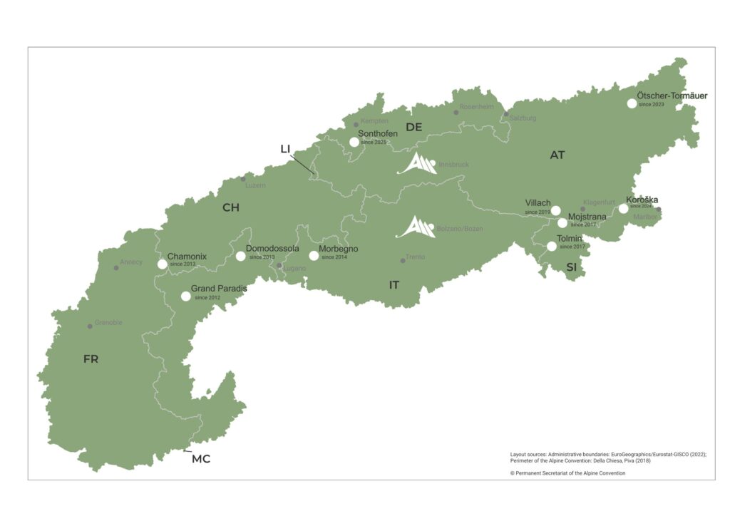 Insieme ad altre 14 organizzazioni alpine, l’Associazione “Città Alpina dell’anno” è osservatore ufficiale della Convenzione delle Alpi, partecipa attivamente ai lavori del Comitato permanente e della Conferenza delle Alpi e ha la possibilità di contribuire alle attività di tutti i Gruppi di lavoro tematici e del Comitato di Verifica. Siamo un’interfaccia tra gli attori locali e la politica internazionale, siamo ambasciatori dello sviluppo sostenibile e ci impegniamo affinché le dichiarazioni d’intenti delle Parti contraenti si traducano in misure concrete. Diamo il nostro contributo attraverso esperienze locali, promuoviamo lo scambio di conoscenze e valorizziamo le pratiche virtuose delle città dell’associazione. È particolarmente significativo che, su un totale di dieci Infopoint della Convenzione delle Alpi, cinque si trovino proprio in Città Alpine dell’anno, un segnale forte del loro impegno a favore dello sviluppo sostenibile nella regione alpina. Inoltre, contribuiamo alla redazione delle Relazioni sullo stato delle Alpi.